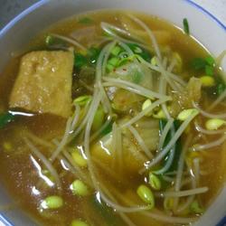 2.After the water boils, add bean sprouts, green onion segments and ginger slices and cook for about 10 minutes.
