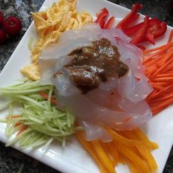 2.Cut bell peppers, cucumbers and carrots into shreds