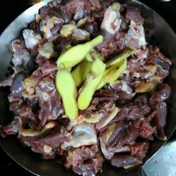 1. Cut the duck into small pieces and mix Wash the blood foam from the ginger slices, drain the water and set aside for later use
