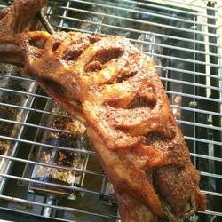 1.A large box or basin can hold the leg of lamb.Cut the leg of lamb deep with a knife and add 40 grams of salt.A bottle of cooking wine, an appropriate amount of onions, ginger and garlic, a pack of thirteen spices, an appropriate amount of chili segments, and Sichuan peppercorns.Appropriate amount of sections, 30 grams of light soy sauce, add water to cover the lamb legs and soak for three hours