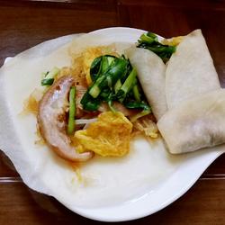 16. You must remember the steps of rolling spring pancakes; spring pancakes as thin as cicada wings, spread with homemade sweet sauce - add shredded green onions - add elbow meat (fat and thin) Interlaced) - add cabbage, vermicelli and shredded pork - add Chinese cabbage - add scrambled eggs - rolls - chew and taste hahaha! ! !