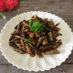 4. Add water, ginger slices and cooking wine to the pot, pour in the sea screws, blanch them and remove Drain.