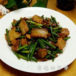 Cut the blanched pork belly slices into as thin slices as possible.Here I used two pots to work together.After the pork belly is fried, scoop it up, then clean the pot, stir-fry the garlic moss according to steps 8 and 9, and then follow step 10.Pour the cooked pork belly into the pot and braise it with the garlic moss.This is the so-called twice-cooked pork.