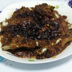 8. Pick out onions, ginger, garlic, pepper, star anise, pepper, and cinnamon.Add oyster sauce, dark soy sauce, sugar, salt, and eight-treasure black bean, mix well.