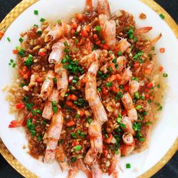 7. Spread minced garlic evenly on Steam the Jiwei shrimp for 8 minutes