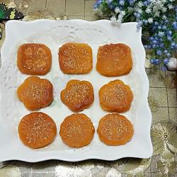 9. Heat the oil until it is 70% hot, add the pumpkin cakes one by one, and sprinkle with white sesame seeds;