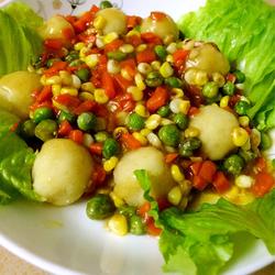 1. Wash the potatoes, dice the carrots, peel the corn and peas together, set aside...