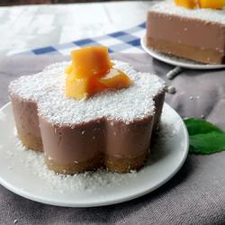4. Soak the gelatine tablets in water to soften them, squeeze out the water and then add some warm water to insulate the water.melt.The chocolate is also melted together with the hot water.