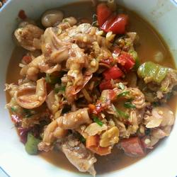 1.Two fresh bullfrogs weigh about 600g (for consumption by 2-3 people) and must be killed by the vendor.Wash it yourself when you get home, cut it into cubes, marinate it with an appropriate amount of salt, cooking wine, and soy sauce for 20 minutes.Some people also add egg white and cornstarch, but I didn't.