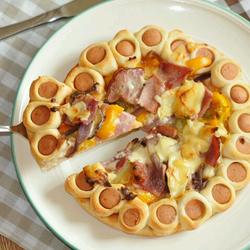 8. Spread tomato sauce or pizza sauce on the crust, and circle the ham dough around the edge~