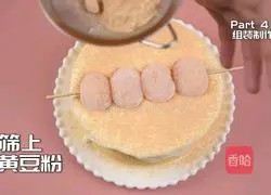 15.Place the cherry blossom white jade meatballs and sprinkle with a layer of soybean flour