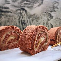 17.Use a rolling pin to roll up the oil paper and roll the cake into a roll