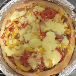 7.Put in the prepared diced green and red pepper and diced ham! You can cut it finer! I'm a little anxious.Hey, it's a big cut! Put it in the oven and bake for 20 minutes