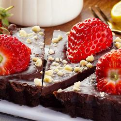 5.Take out the strawberry chocolate tart, unmold and cut into pieces