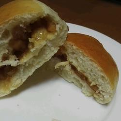 2. Divide the fermented dough into even portions, roll it into a round shape, and let it rest for 15 minutes.Roll out the dough.Shape into a round shape, wrap the apple filling into the dough, and pinch to seal.