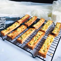 7. Air dry after taking out the oven, golden and crispy , the slightly burnt garlic toast strips are ready.