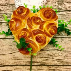 8.All roses After the flowers are ready, put them into an 8-inch mold for the second fermentation until they double in size.After the second rise, brush with a layer of egg wash, preheat the oven to 180 degrees, and bake for 20 minutes.Observe carefully and cover with tin foil in time to prevent discoloration.Overweight