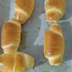 1.Except butter, mix all the ingredients until the surface is smooth, You can add butter and knead it, then let it rise for an hour, weigh it and divide it into six equal parts and let it rise for 20 minutes