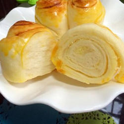 6. If you don’t like cheese and bacon, you can make coconut rolls.The preparation method is the same, but the difference is For the filling, first stir coconut milk and butter to make the filling, then roll the dough into a long strip, spread it evenly, roll it up, cut it with a cutter, and put it in the mold