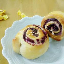 Roll out the dough a little larger and wrap it up thinner.The bread will rise beautifully and turn purple in color.