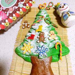 12.After the baked Christmas tree has cooled Sprinkle with powdered sugar and decorate the cookies to make them look even better!