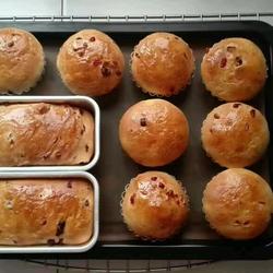 1.Except butter and dried cranberries, knead the other ingredients into a dough.