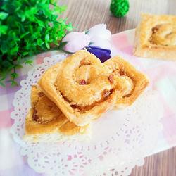 13. Brush the softened butter on the dough, then brush it with jam and sprinkle it with Chopped peanuts, sprinkle with raisins and chopped red dates, press lightly with your hands