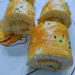 14. Cut into pieces, spread salad dressing on both sides, and dip in meat floss.