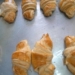 18.Make it into a horn shape, grease the baking pan with oil, and put it in the fermentation box to ferment for about 30 minutes