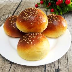 10. When the volume expands again to about 1.5 times of the original bread , lift off the plastic wrap, brush an even layer of egg wash on the surface, and garnish with sesame seeds.