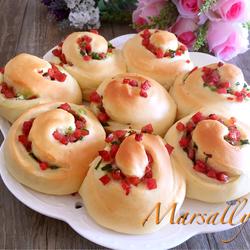 12.Apply a layer of salad dressing and sprinkle with the pre-diced ham and chopped green onion.Remember to press the thin side without spreading