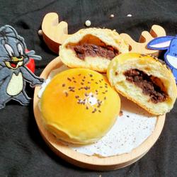 5. Flatten the dough to make it bigger and add the bean paste filling..