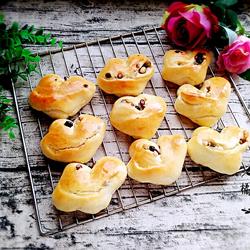 5.Take out a piece of dough, roll it into an oval shape, and put honey beans on it