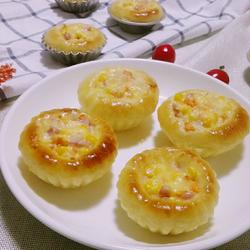 When kneading the dough by hand, don't add all the water at once, add it little by little.When the dough is a little dry, you can dip your hands in some water and knead the dough.Beat the egg liquid, don't add it all, leave a little for brushing the surface, and knead it well.The surface is very smooth and does not stick to your hands.If the bottom bulges out again during the second fermentation when it is pressed into a small bowl shape in the mold, let me tell you a little tip.You can use a garlic hammer to press it down in the middle of the small bowl.It will be smoother.The oven time Adjust it to your own oven!