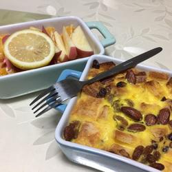 8.Pour the mixture into the ceramic tableware and try to soak every crouton