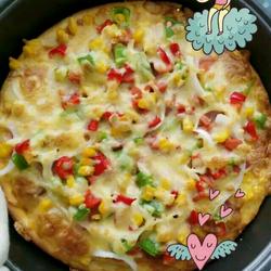 2. Put the bacon.corn.Green beans, green peppers, red peppers, onions.