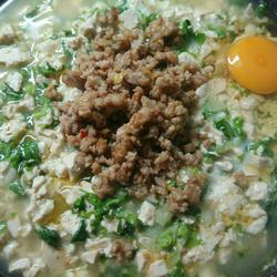 Minced pork, vegetables and tofu (if you want it to look good, you can fry it with some chili oil and pour it on)