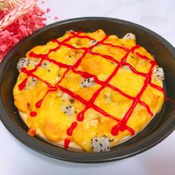 9.On top of the fruit, sprinkle a layer of grated cheese and a little egg liquid