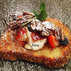3. Place your favorite fruits and nuts, sift a layer of powdered sugar, Drizzle with a little honey and enjoy delicious French toast.