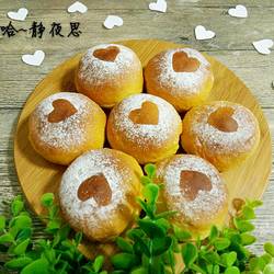 14. Take out the fermented bread dough and remove the heart.Stick the paper piece in the middle (it will be easy to stick it if the paper is dipped in some water, there should be no obvious water droplets, the paper should be slightly moist)