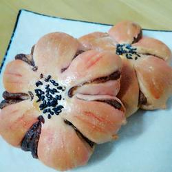11. After everything is done, put it in the oven for secondary fermentation.You can add a bowl of hot water to increase the fermentation.Humidity and temperature, take it out after fermentation in about half an hour, brush with egg liquid in the middle and sprinkle with some black sesame seeds.You can brush a layer of strawberry jam on the petals.Preheat the oven to 165 degrees and bake for 20 minutes.Cover with tin foil when browning occurs.