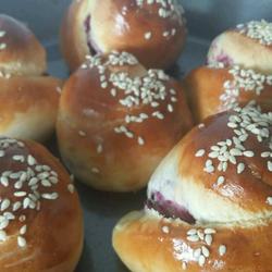 4. Roll out the dough, spread the prepared purple sweet potato filling on it, roll it up and shape it