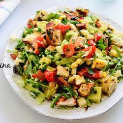 4. All the ingredients are ready: cut the cherry tomatoes into small pieces, Peel the avocado and cut into small pieces, peel the kernels from the roasted corn, cut the chives into sections, etc.