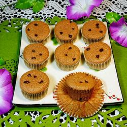 8.Use a spoon to spoon the cake batter into 80% of the paper mold.Place the remaining chocolate beans