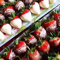 6. Insert a toothpick into the strawberry, dip it in a little dark chocolate, then a little white chocolate, and then Dip a little dark chocolate, use a toothpick to outline the pattern you like, and use your imagination to decorate.