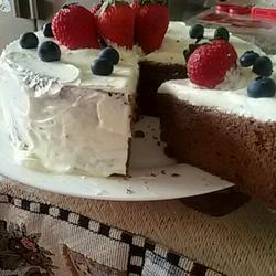 18. 200 grams of whipping cream, 20 grams of sugar, beat until fluid, pour on the cake , add fruit garnish.OK