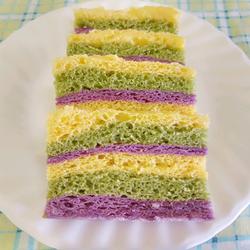 9. Repeat with purple sweet potato, spinach and pumpkin slices, cover with lid and let rise