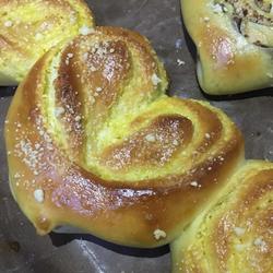 1. Put all the ingredients into the bread in the order of liquid first and then solid except oil.In a bucket, put the sugar and salt diagonally, knead the dough with corn oil for ten minutes before adding it