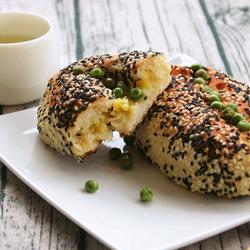 12. The bread base is dipped in a layer of half and half black and white sesame seeds.