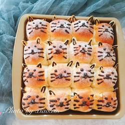 11. Melt the chocolate in warm water and put the melted chocolate liquid into a disposable piping bag , cut a very small opening at the front end (don’t cut it too big, mine was too big) and then draw a kitten’s expression on the bread.